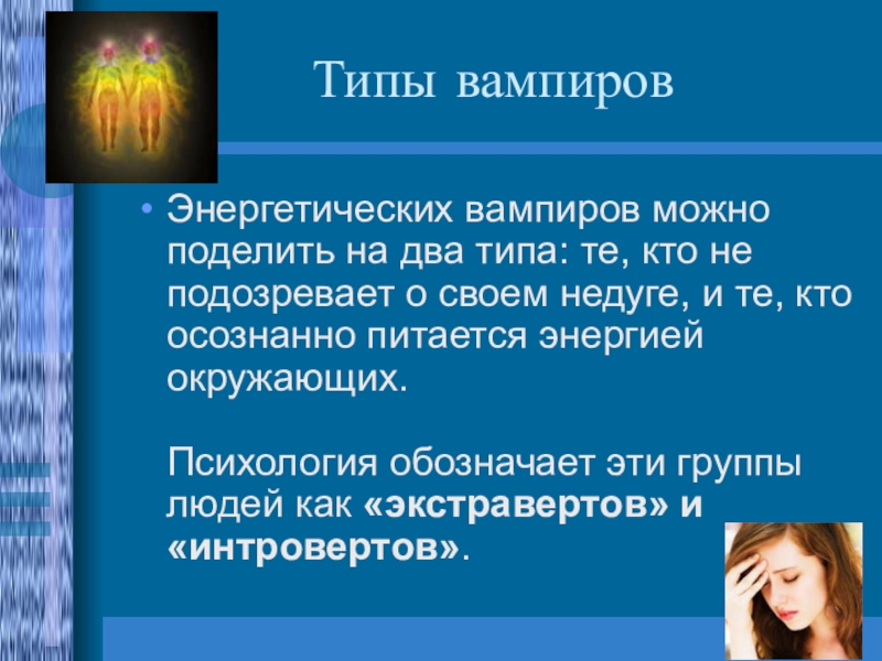 Энергетических вампиров можно поделить на два типа: те, кто не