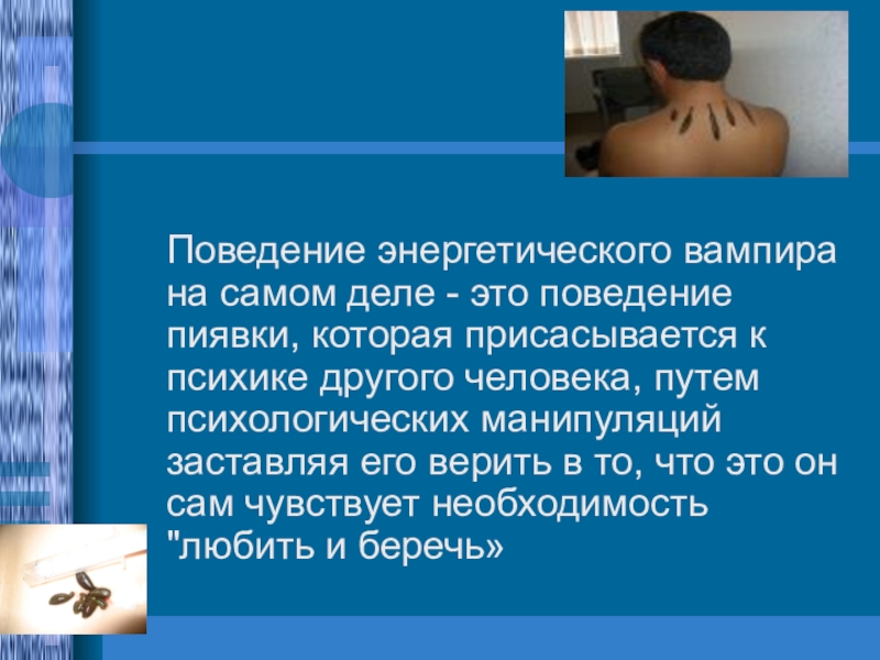 Поведение энергетического вампира на самом деле - это поведение пиявки, которая