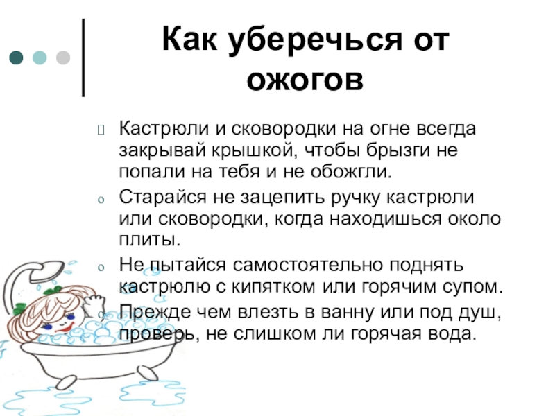 Прежде чем влезть в ванну или под душ, проверь, не слишком ли горячая вода.