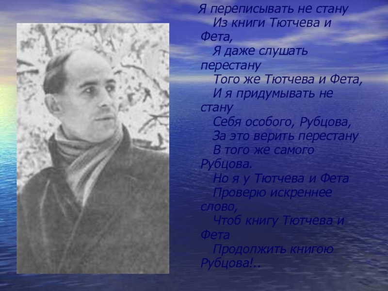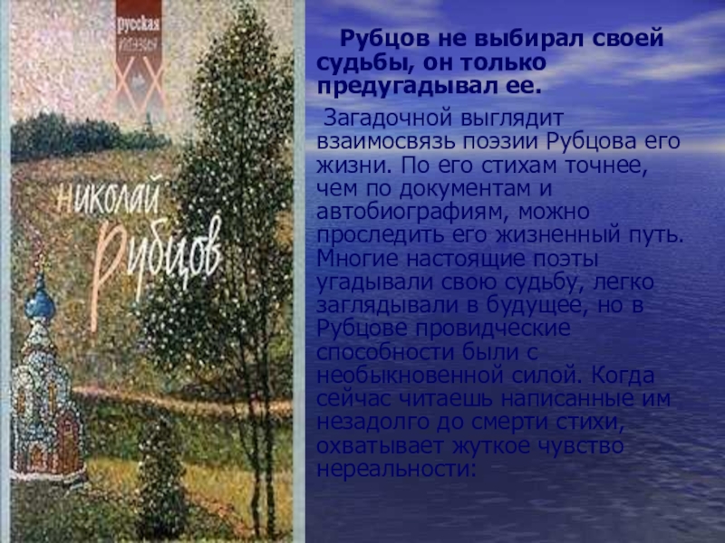 Слайд 15 Рубцов не выбирал своей судьбы, он только предугадывал ее.