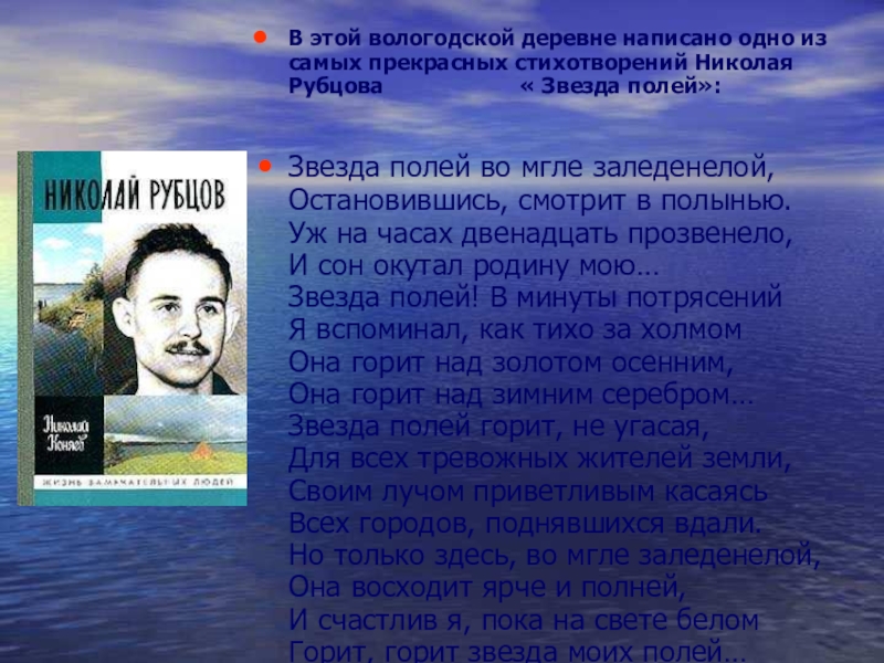 Слайд 14В этой вологодской деревне написано одно из самых прекрасных стихотворений Николая