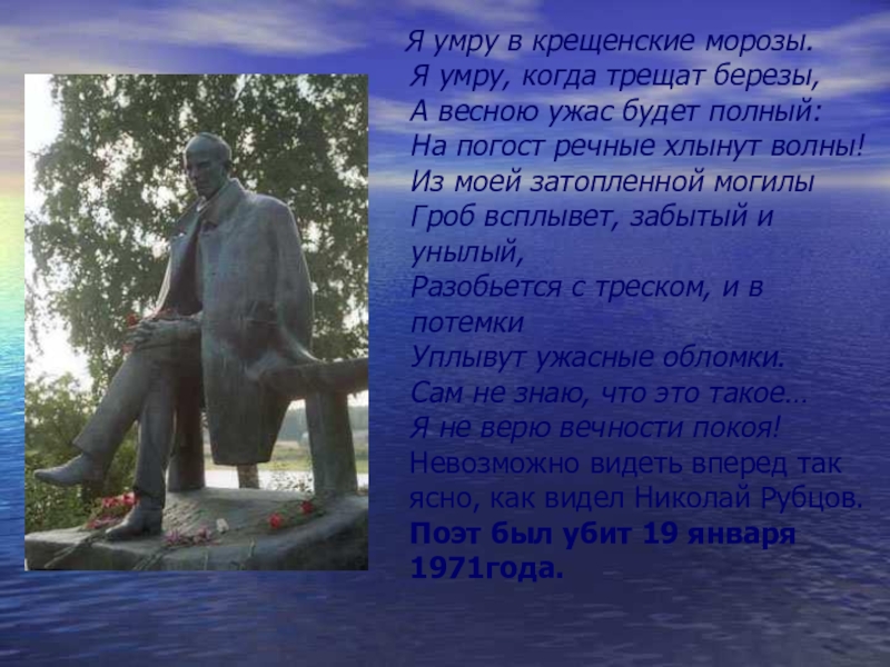 Невозможно видеть вперед так ясно, как видел Николай Рубцов. Поэт был убит 19 января 1971года.