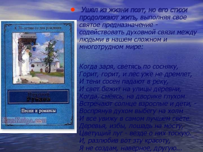 Слайд 17 Ушел из жизни поэт, но его стихи продолжают жить, выполняя