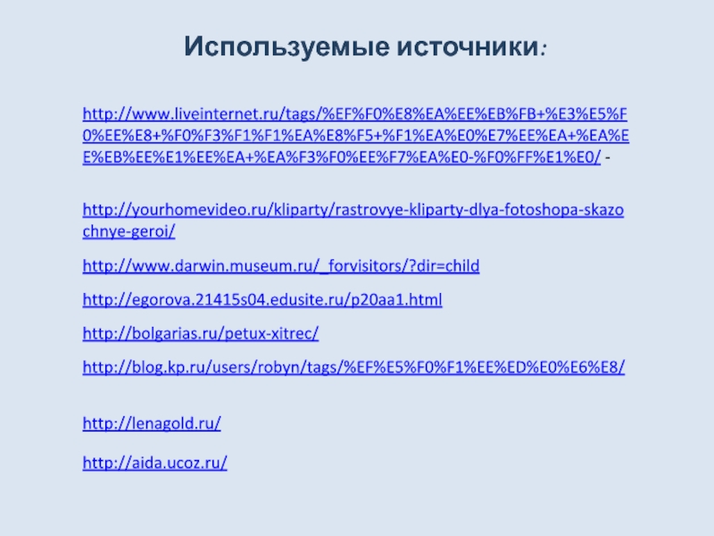 Слайд 9http://www.liveinternet.ru/tags/%EF%F0%E8%EA%EE%EB%FB+%E3%E5%F0%EE%E8+%F0%F3%F1%F1%EA%E8%F5+%F1%EA%E0%E7%EE%EA+%EA%EE%EB%EE%E1%EE%EA+%EA%F3%F0%EE%F7%EA%E0-%F0%FF%E1%E0/ -