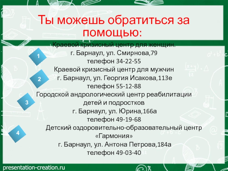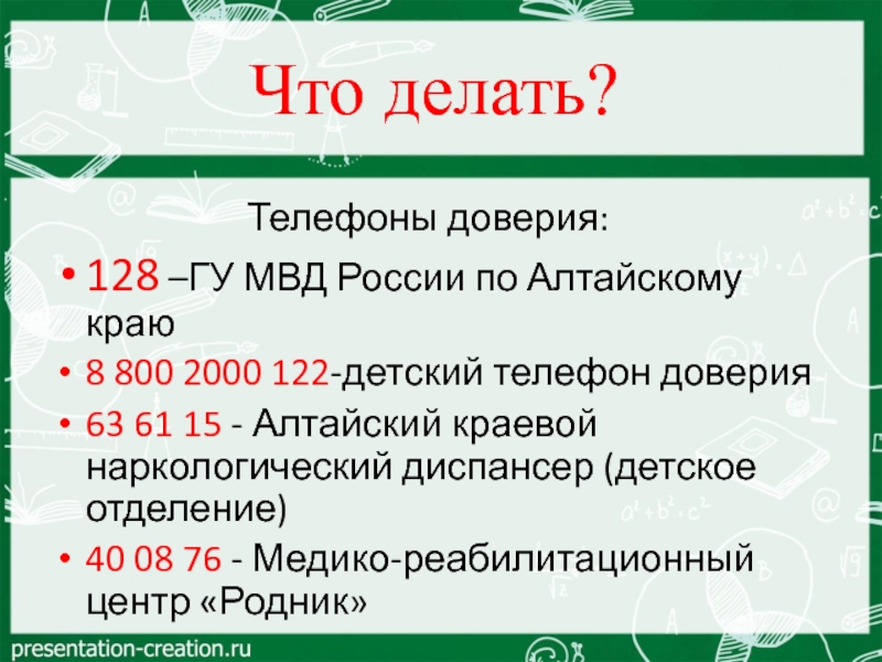 Это сайт презентаций, где можно хранить и обмениваться своими презентациями, докладами, проектами, шаблонами в формате PowerPoint с другими пользователями. Мы помогаем школьникам, студентам, учителям, преподавателям хранить и обмениваться учебными материалами.
