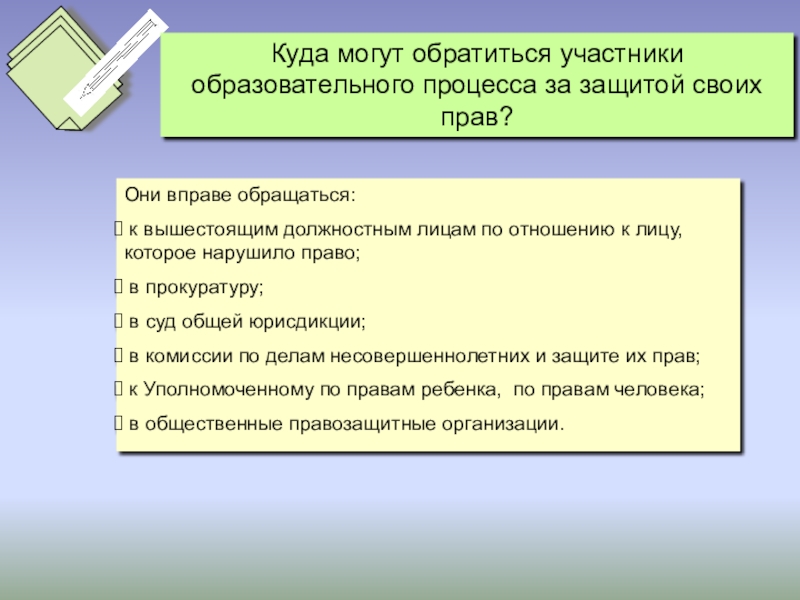Куда могут обратиться участники образовательного процесса за защитой своих прав?