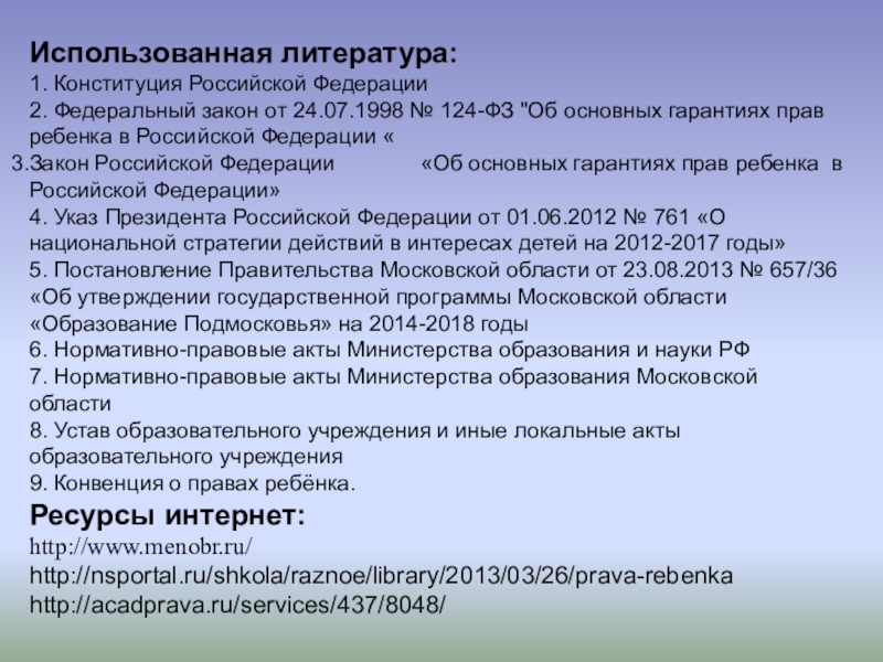 4. Указ Президента Российской Федерации от 01.06.2012 № 761 «О национальной стратегии действий в интересах детей на 2012-2017 годы»