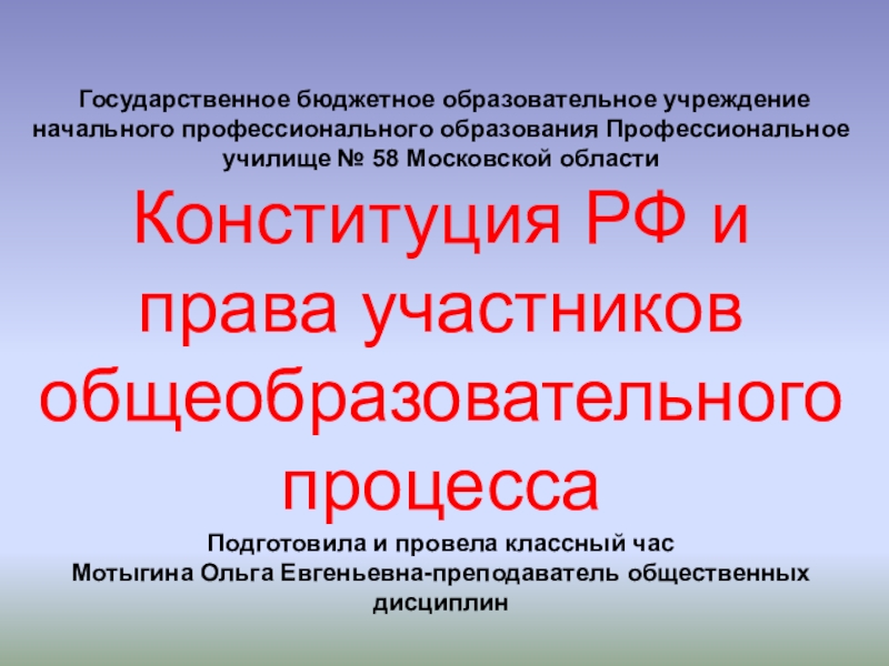 Тема классного часа: «Конституция Российской Федерации и права участников образовательного процесса».