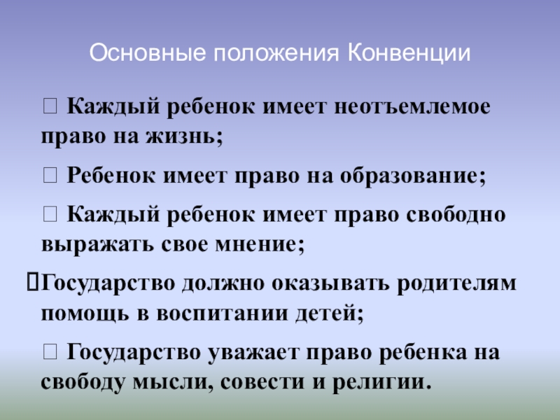 ⮚ Государство должно обеспечить ребенку возможность пользоваться своими правами;