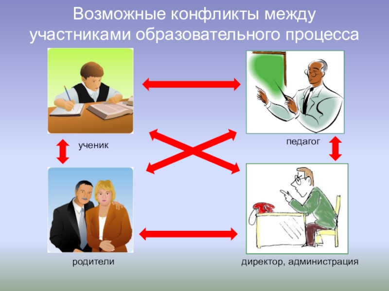 Слайд 22Возможные конфликты между участниками образовательного процесса