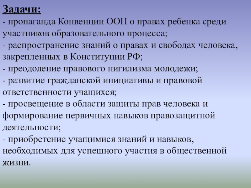 - пропаганда Конвенции ООН о правах ребенка среди участников образовательного процесса;