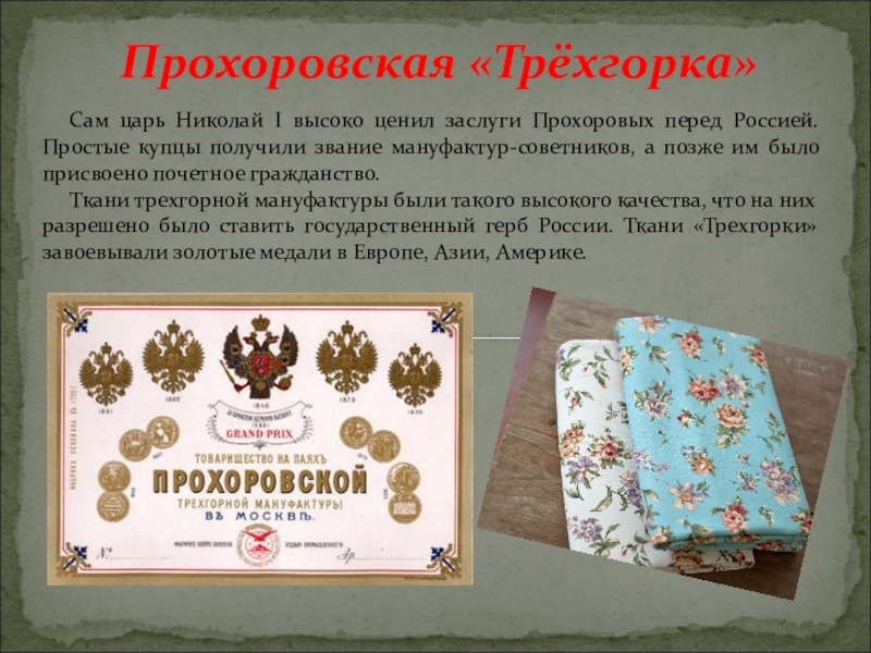 Чтобы победить конкурентов, русские купцы старались выпускать товары самого высокого качества. За это на товарах разрешалось ставить государственный герб России.