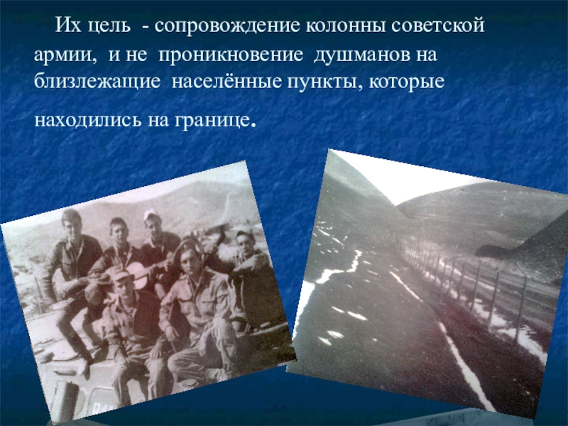 Их цель - сопровождение колонны советской армии, и не проникновение душманов на близлежащие населённые пункты, которые