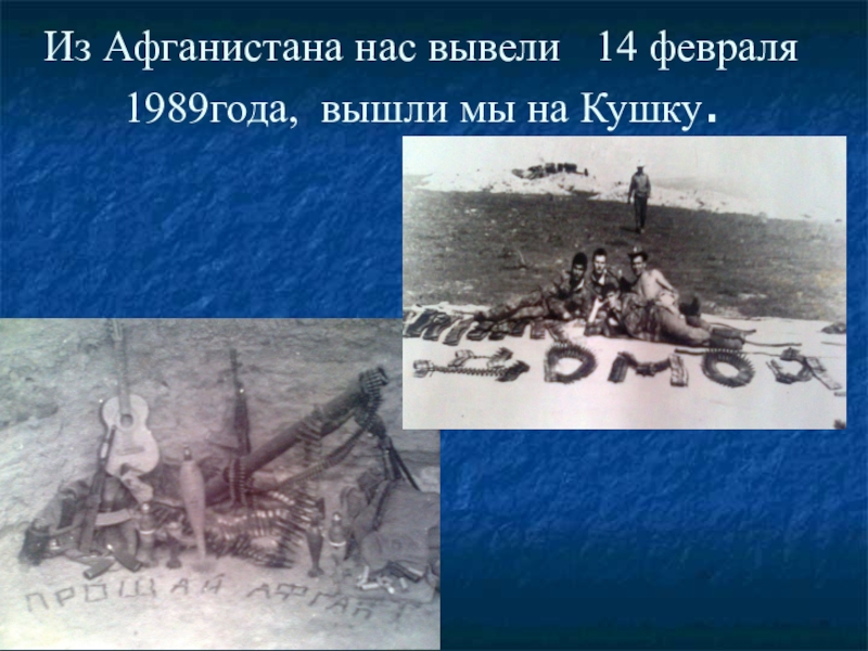 Слайд 12Из Афганистана нас вывели 14 февраля 1989года, вышли мы на