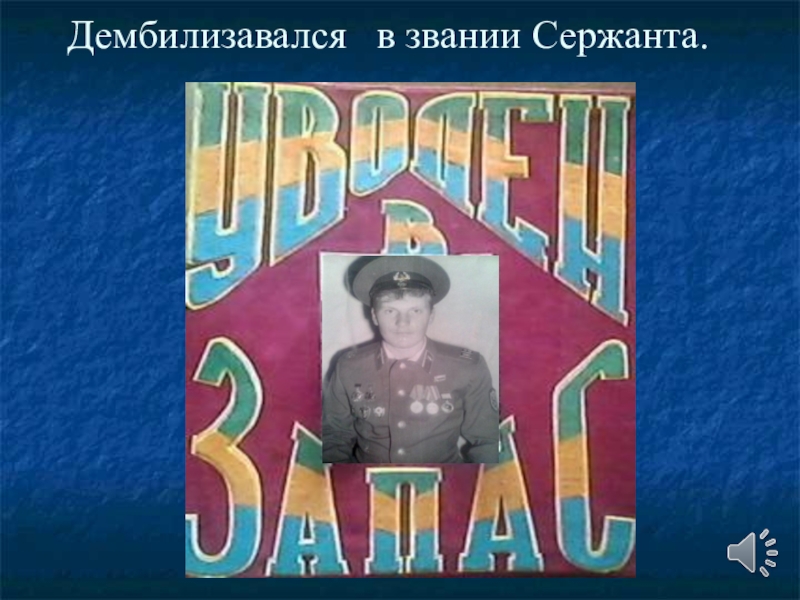 Слайд 17Дембилизавался в звании Сержанта.