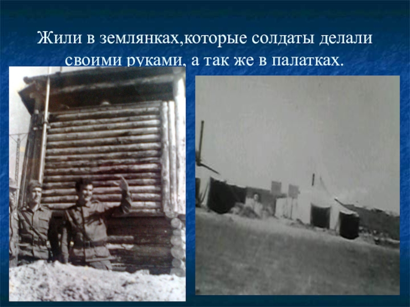 Слайд 8Жили в землянках,которые солдаты делали своими руками, а так же в