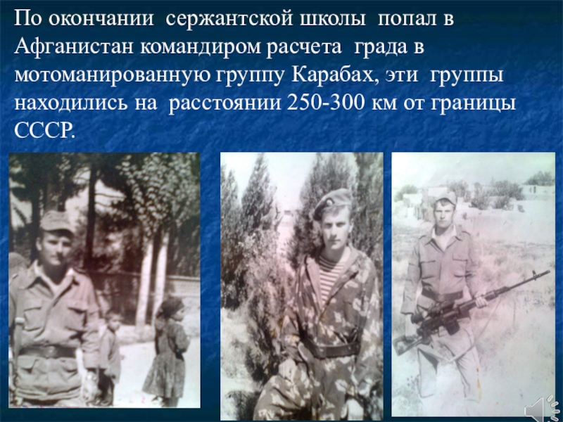 Слайд 6По окончании сержантской школы попал в Афганистан командиром расчета града в