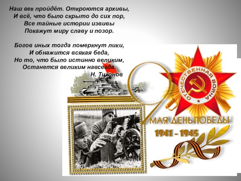 Слайд 36Наш век пройдёт. Откроются архивы,