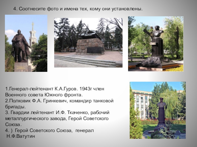 Слайд 344. Соотнесите фото и имена тех, кому они установлены.
