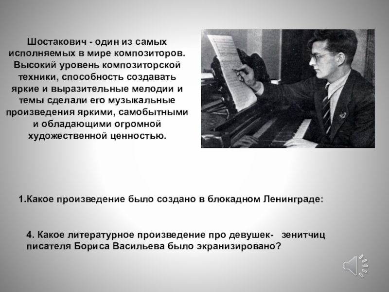 Слайд 23Какое произведение было создано в блокадном Ленинграде: