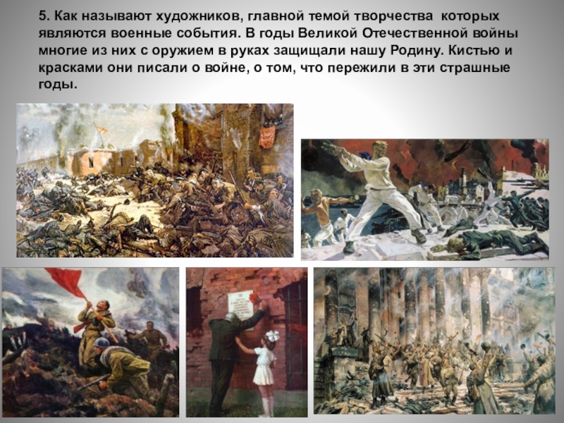 Слайд 245. Как называют художников, главной темой творчества которых являются военные события.