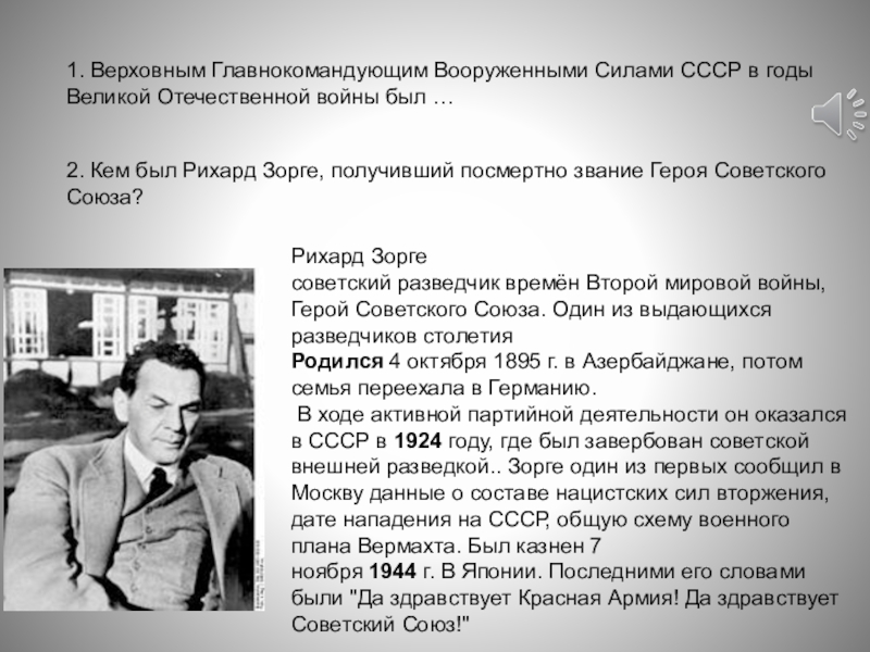 2. Кем был Рихард Зорге, получивший посмертно звание Героя Советского Союза?