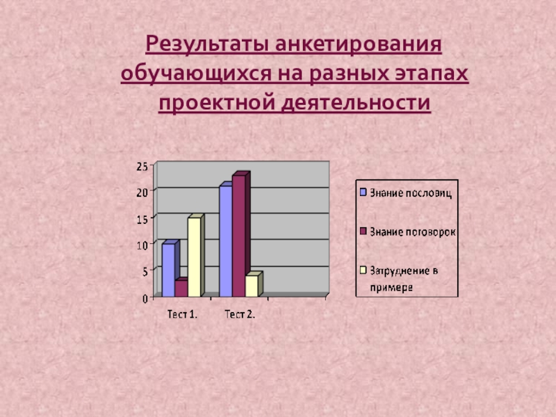Слайд 16 Результаты анкетирования обучающихся на разных этапах проектной деятельности
