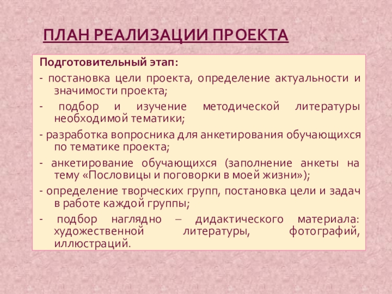 Слайд 8ПЛАН РЕАЛИЗАЦИИ ПРОЕКТА