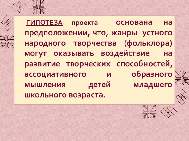Слайд 6 ГИПОТЕЗА проекта основана на предположении, что, жанры устного народного творчества