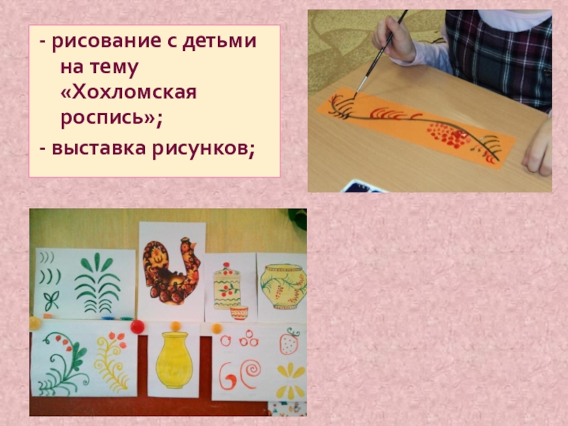 Слайд 12- рисование с детьми на тему «Хохломская роспись»;