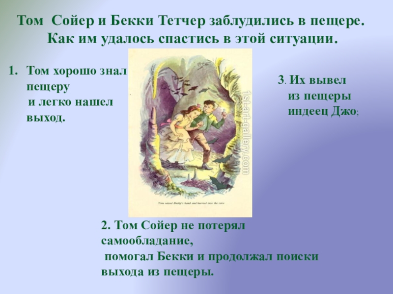 помогал Бекки и продолжал поиски выхода из пещеры.