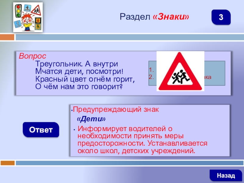 Информирует водителей о необходимости принять меры предосторожности. Устанавливается около школ, детских учреждений.
