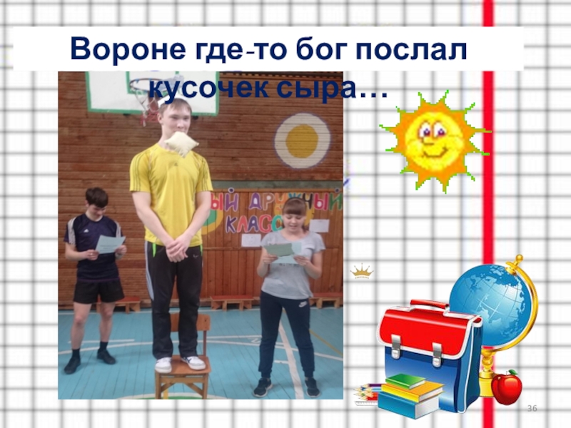 Слайд 36Вороне где-то бог послал кусочек сыра…