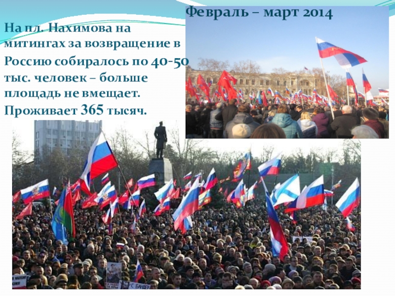 Февраль – март 2014На пл. Нахимова на митингах за возвращение в Россию собиралось по 40-50 тыс. человек