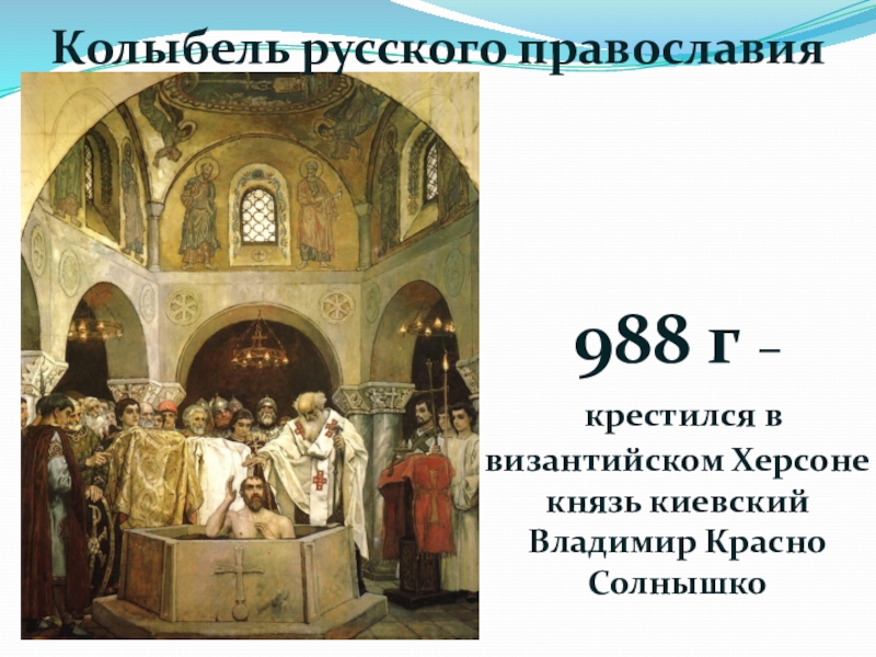 Колыбель русского православия988 г – крестился в византийском Херсоне князь киевский Владимир Красно Солнышко