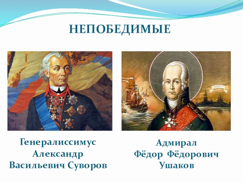 Генералиссимус Александр Васильевич СуворовАдмирал Фёдор Фёдорович УшаковНЕПОБЕДИМЫЕ