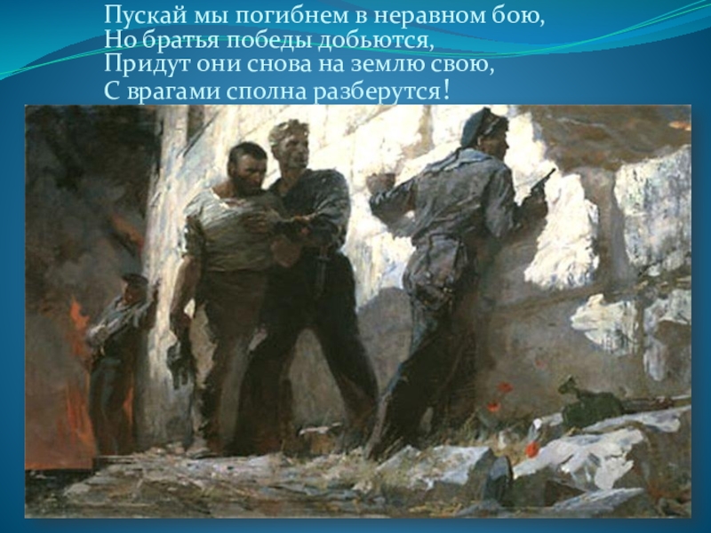 Слайд 17Пускай мы погибнем в неравном бою, Но братья победы добьются, Придут они снова
