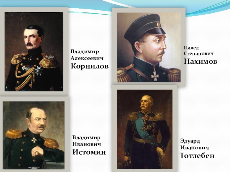 Владимир АлексеевичКорниловПавел СтепановичНахимовЭдуардИвановичТотлебенВладимир ИвановичИстомин