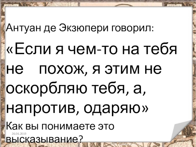 Антуан де Экзюпери говорил: «Если я чем-то на тебя не  похож, я этим не оскорбляю тебя,