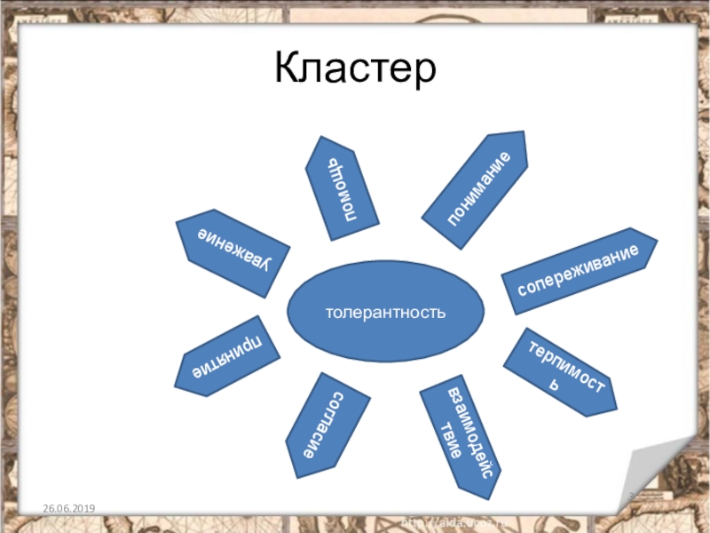 Кластертолерантностьсопереживаниетерпимостьсогласиевзаимодействиепринятиеуважениепониманиепомощь