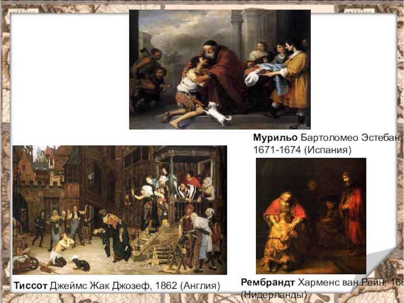 Тиссот Джеймс Жак Джозеф, 1862 (Англия) Мурильо Бартоломео Эстебан,  1671-1674 (Испания) Рембрандт Харменс ван Рейн, 1669