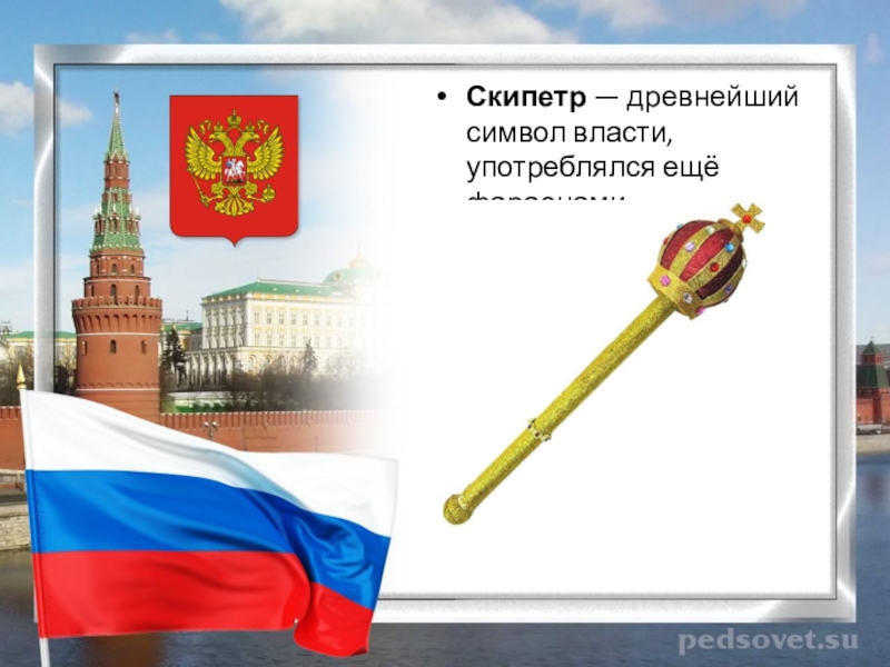 Слайд 18Скипетр — древнейший символ власти, употреблялся ещё фараонами.