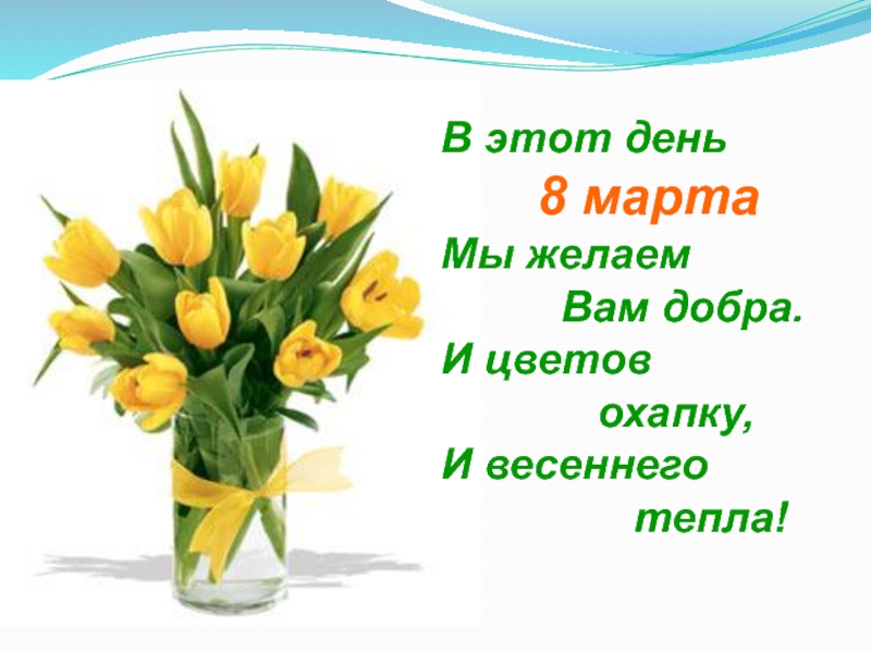 В этот день     8 мартаМы желаем      Вам добра.И