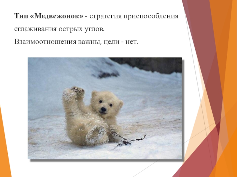 Слайд 23Тип «Медвежонок» - стратегия приспособления