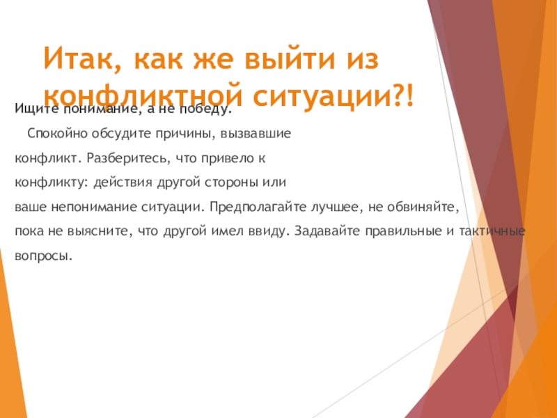 Слайд 27Итак, как же выйти из конфликтной ситуации?!