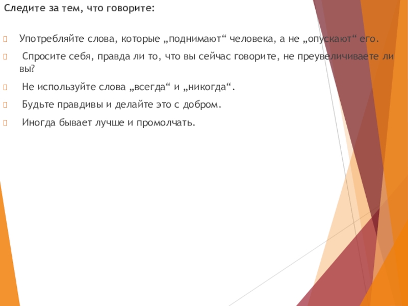 Спросите себя, правда ли то, что вы сейчас говорите, не преувеличиваете ли вы?
