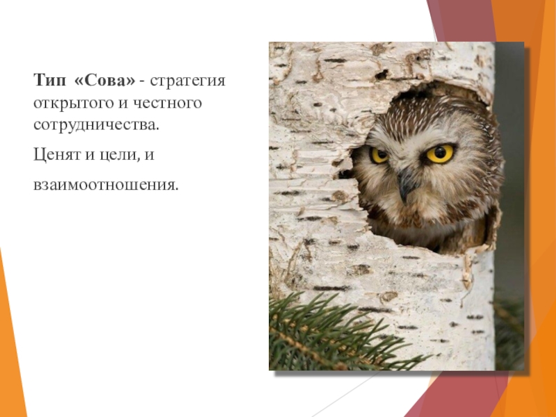 Слайд 20Тип «Сова» - стратегия открытого и честного сотрудничества.