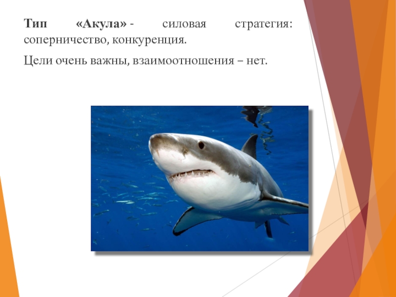 Слайд 19Тип «Акула» - силовая стратегия: соперничество, конкуренция.