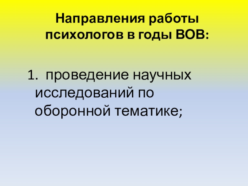 2) изучение негативных психологических феноменов, вызванных войной, и разработка рекомендаций по их нейтрализации;