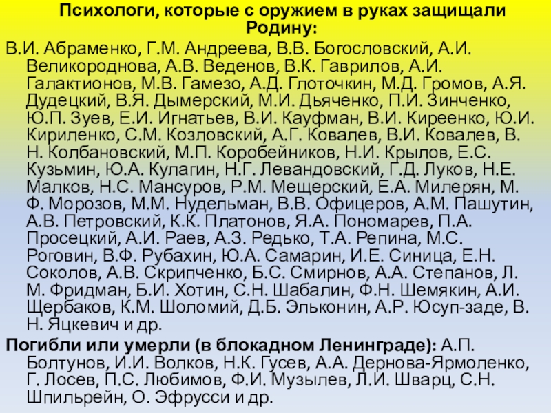 Слайд 22 Психологи, которые с оружием в руках защищали Родину: